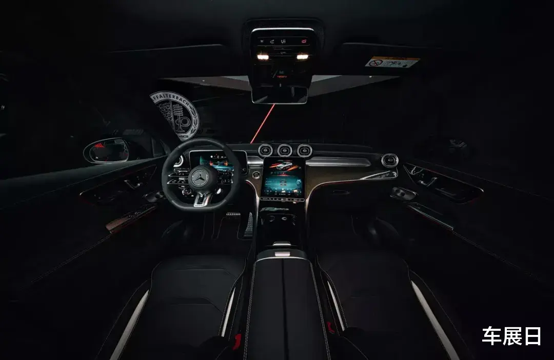 内饰方面,配备AMG样式三辐式多功能方向盘,中控台大量使用碳纤维面板。配置上,底盘标配后轮转向系统,“漂移模式”收费。