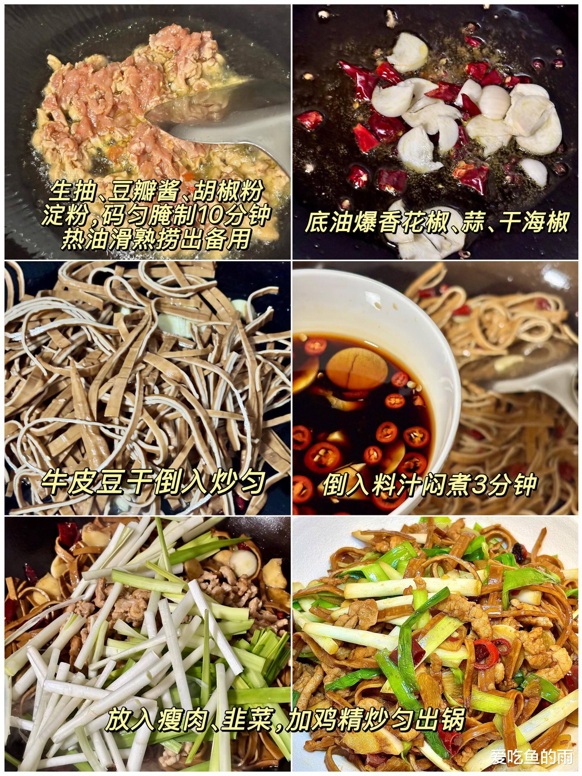 这味道,总让我想起大学时校门口那家小炒店。昏黄的灯光下,老板颠勺如飞,一盘盘牛皮豆干炒肉丝带着锅气,被端上油腻的小方桌。三五好友,几瓶啤酒,就着这盘咸香韧滑的江湖菜,吹牛谈天,仿佛所有的青春烦恼都能被这浓烈的滋味冲散。它不精致,却充满了生活的烟火气和直来直去的痛快。家常小炒的智慧,往往就在这些细节里:豆干焯水去豆腥增韧性,肉丝上浆保嫩滑,热锅快炒锁住镬气。下次当你馋那口扎实的咸香,不妨试试这盘牛皮豆干炒肉丝。它简单、直接、下饭,像极了我们热热闹闹、有滋有味的平凡日子。