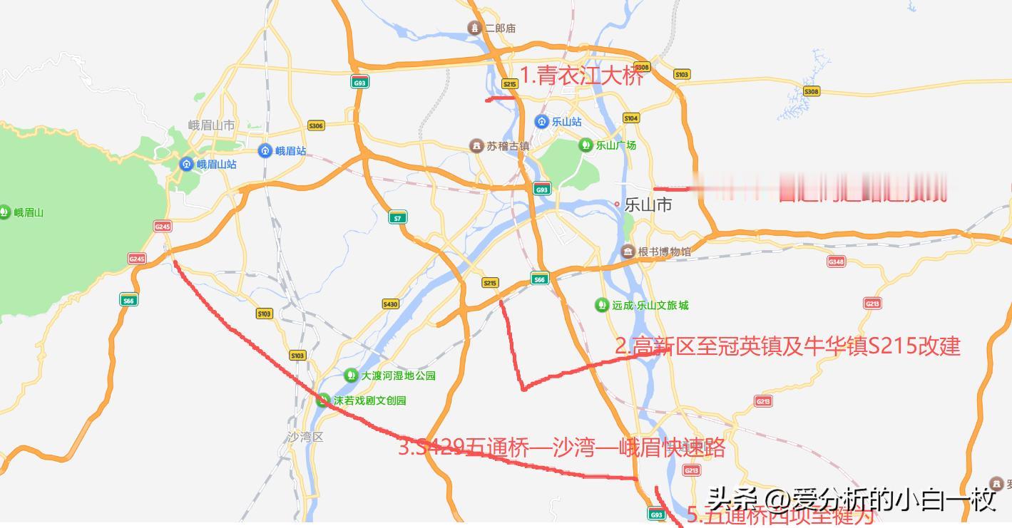 3 . 省道429线(五通桥-沙湾-峨眉方向)• 基本路线:S429省道规划为连接五通桥区、沙湾区和峨眉山市的交通要道,但目前相关连贯建设还处于论证和规划阶段。正在纳入“十五五”交通规划。