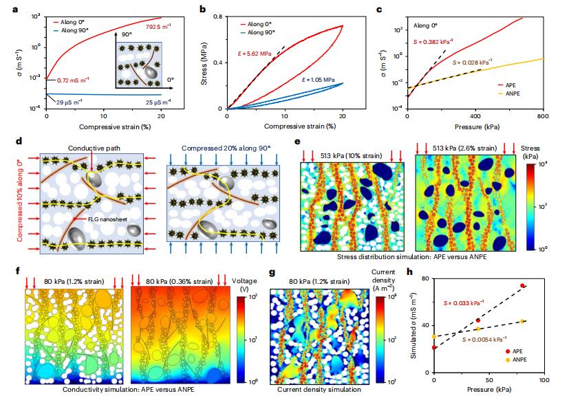 说回这款传感器,它的核心是一种叫做 APE 的混合材料,全称是各向异性多孔弹性体,里面装着三样东西:带有尖刺的镍颗粒、石墨烯纳米片以及液态金属液滴。