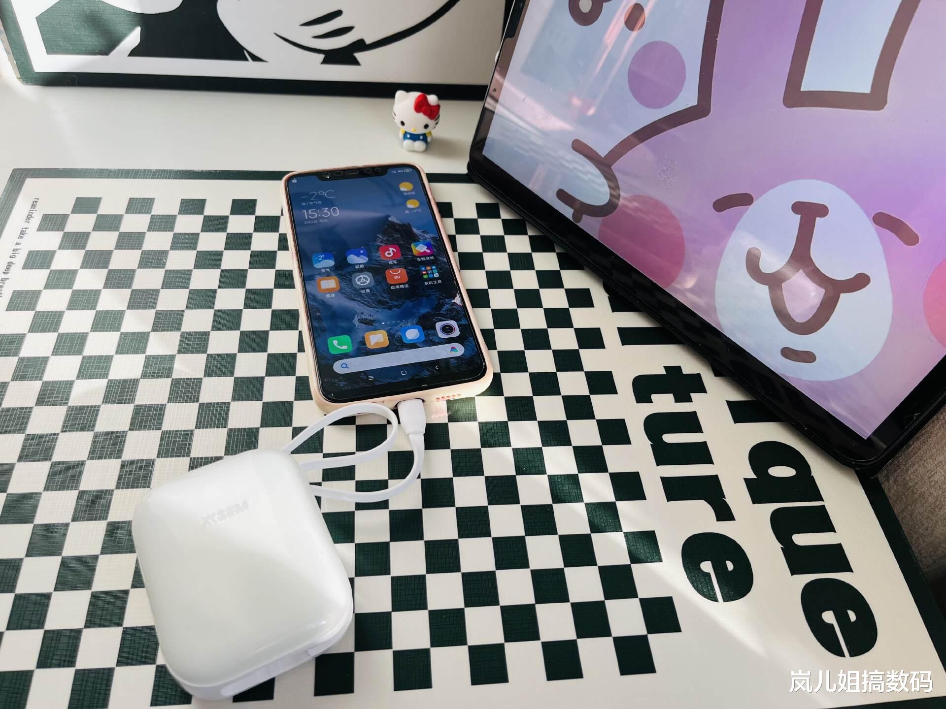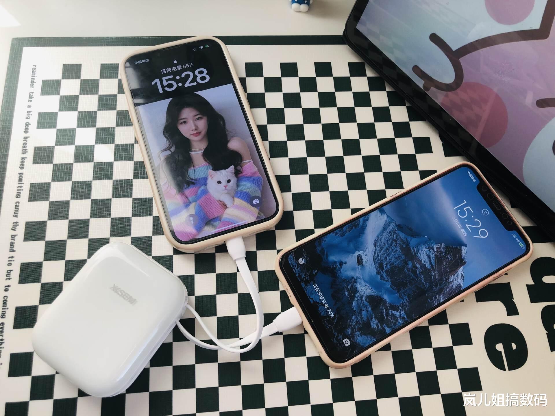 这款充电宝自带两条快充线,支持22.5W快充,能同时充两个设备,可随时随地给手机补电,在我实际用下来,手机快没电的时充,大概30分钟就能充到近50%的电量,充电效率真的蛮快。
