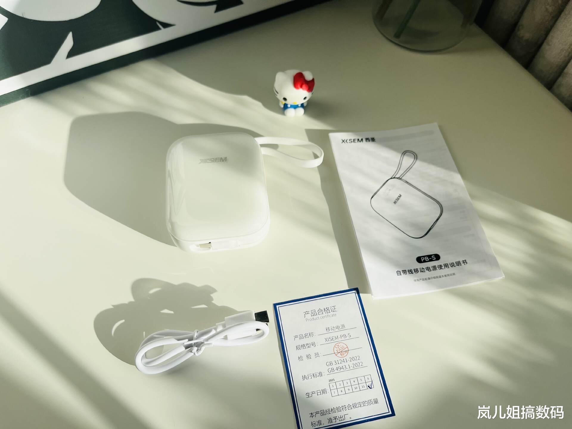 包装盒内包含了西圣PB-S半固态充电宝、Type-C充电线、说明书和保修卡。