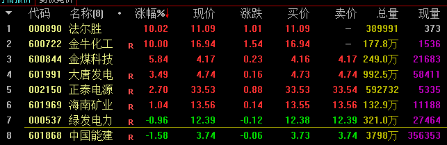 核心概念:煤化工概念, 国企改革, 风电