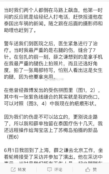 2014年:两人在泰国出车祸,李雨桐腿受伤缝7针,薛之谦拿李雨桐的伤口照片冒充自己受伤,用来卖惨炒作,这是两人第一个大矛盾。
