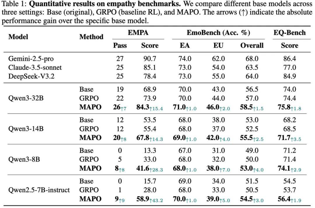 从这个角度看,EMPA 与 MAPO 的意义,或许并不止于「共情」这一垂直领域,更像是在提前回答一个未来会越来越普遍的问题:当大模型开始进入那些需要长期理解、持续判断、渐进影响人的任务时,我们究竟应该如何衡量它,又该如何把它训练出来。
