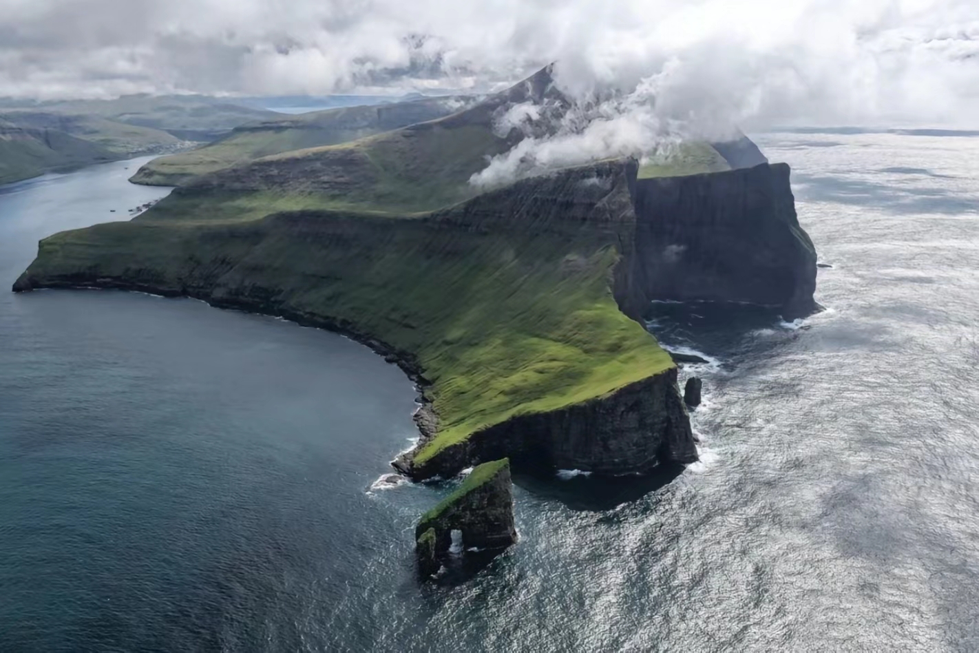 在法罗群岛的崖岸,风是绿的,浪是碎的,时间也跟着慢了下来。这里没有喧嚣,只有草叶与海风私语,悬崖与海浪相拥。站在世界的尽