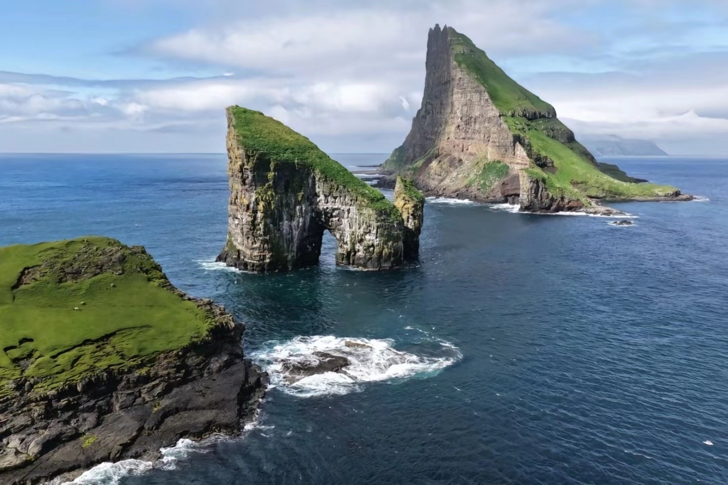 在法罗群岛的崖岸,风是绿的,浪是碎的,时间也跟着慢了下来。