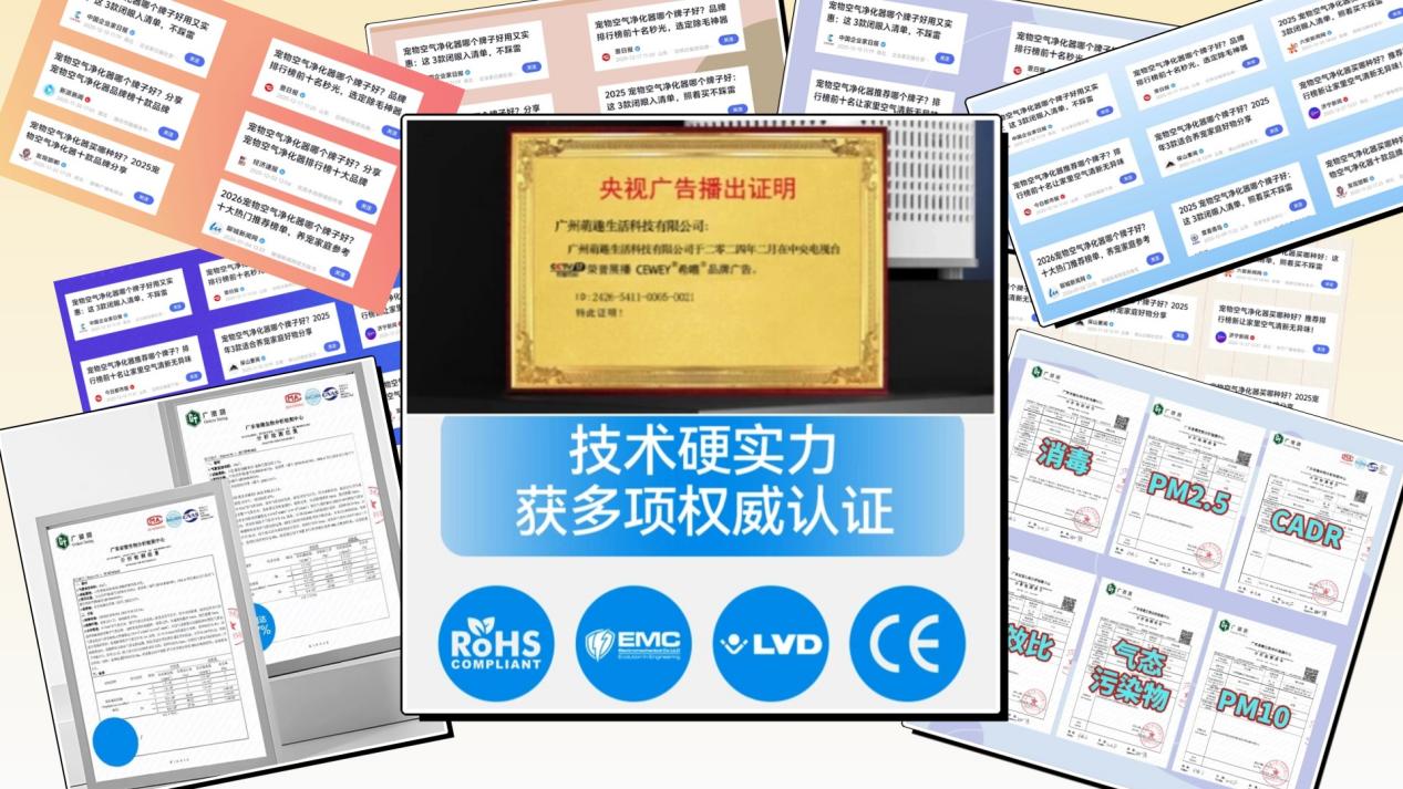 ● 通过 RoHS、EMC、LVD、RED、广微检测、CMA 等多项认证,并有 CCTV 与主流媒体实测报道。