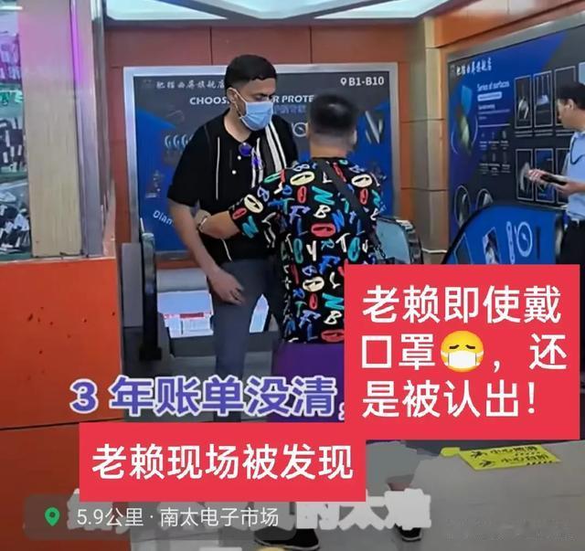 广州电子批发市场内,老外老赖被商户认出并抓住。