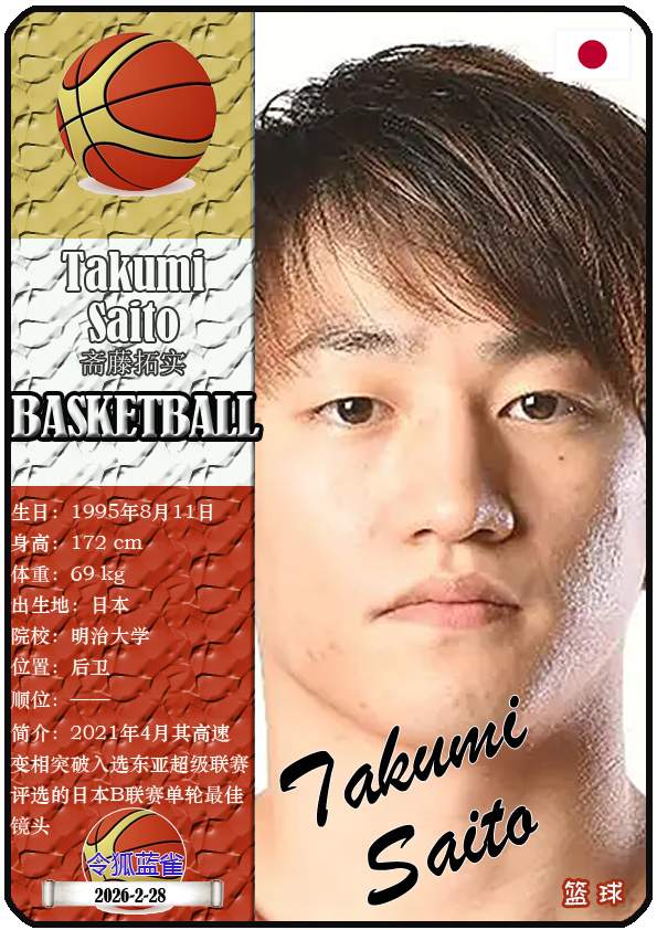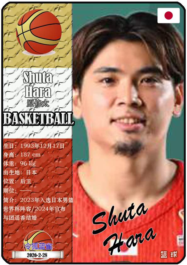 国际篮联2027篮球世界杯预选赛是国际篮球联合会(FIBA)为选拔2027年卡塔尔篮球世界杯参赛队伍而举办的系列赛事。2026年2月23日至3月3日是预选赛的第二个窗口期,本期盘点该阶段日本男篮12人(按中文姓名拼音字母排序):