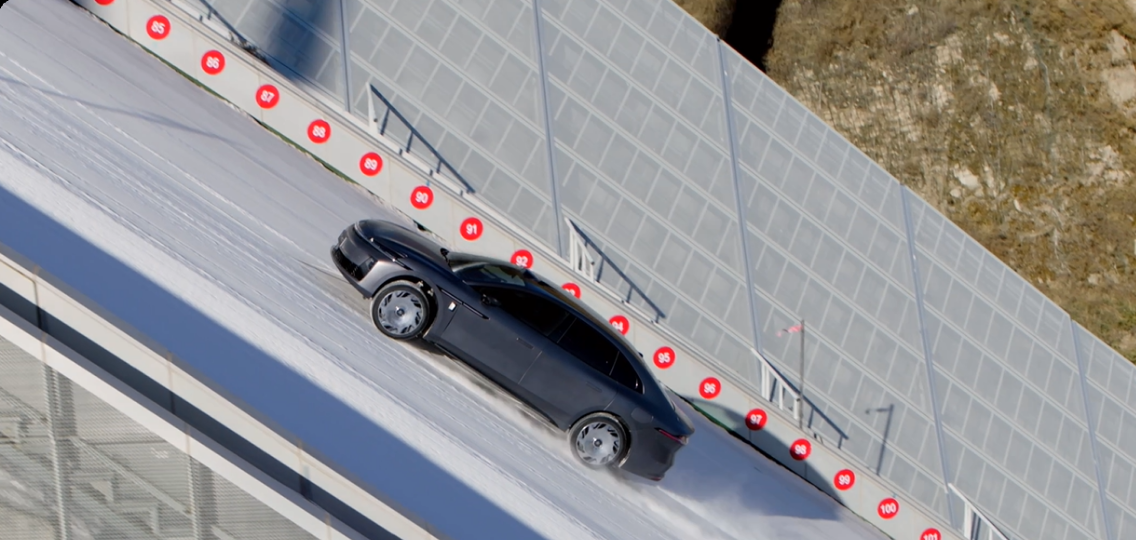 有实力,无惧任何挑战。发布会前,昊铂A800凭借这套底盘系统的加持,顺利登顶国家跳台滑雪中心“雪如意”,面对85米垂直落差、125米坡长、37.1度最大坡度,克服冰雪湿滑、陡坡等多重极端条件,完成了行业第一个双人冲坡挑战,实现对经典豪华极限爬坡能力的正面超越。