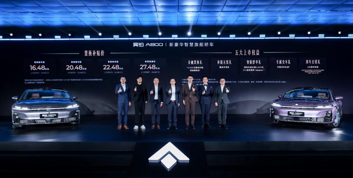 3月4日,昊铂品牌惊蛰之夜暨昊铂A800上市发布会在广汽集团番禺总部举行。昊铂品牌全新战略力作——新豪华智慧旗舰轿车昊铂A800正式上市,广汽集团总经理閤先庆携团队及众多嘉宾、媒体等超700人出席。昊铂A800搭载三电机四驱智慧数字底盘,采用行业顶尖的华为乾崑智驾ADS 4.1与鸿蒙座舱5,重新定义智能时代的新豪华标准。新车共有四个配置版本,官方指导价18.98万元-29.98万元,叠享10,000元厂家置换补贴和15,000元新能源车国家置换补贴,置换补贴价16.48万元-27.48万元。