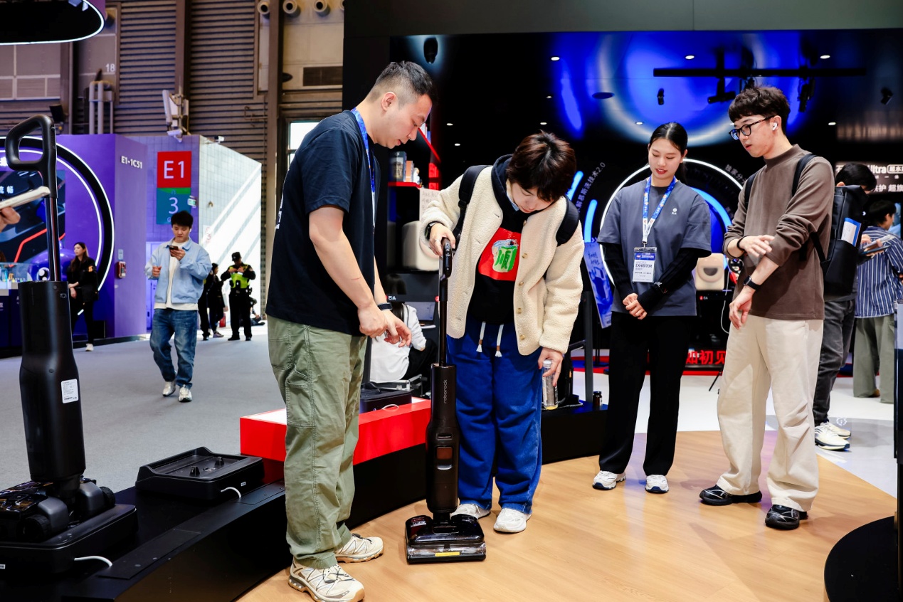 在石头的线下展台,你基本看不到“请勿触摸”的牌子。ROCKY AI互动装置与各种趣味挑战游戏。参观者可以操控“六边形战士”P20 Max或爬楼机器人G-Rover去应对复杂地形。或者,可以亲自体验A30 Pro steam 2.0尊享版的“零感AI速干臂”与微秒级电磁悬挂控水技术给家庭带来的改变。从旁观者变为掌控者,这种让用户“自己验证产品有多强大”的方式,迅速建立了极强的信任链接。