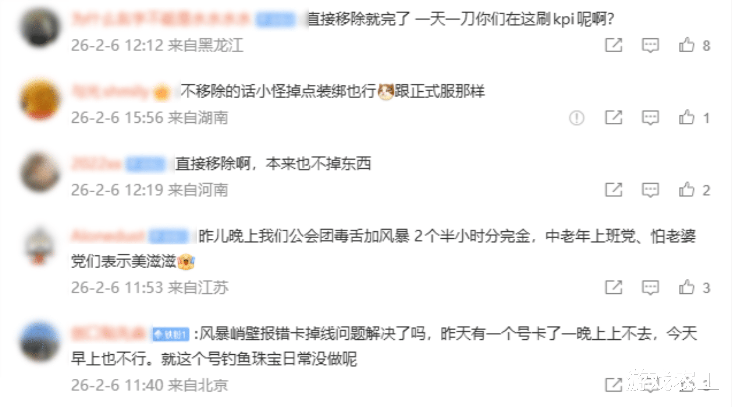 对于这次削弱,其实大家的看法跟毒蛇神殿一样,毕竟如此的小怪确实是食之无味弃之可惜,毕竟没有什么掉落,如今又疯狂削弱了。那么小怪确实就没有意义了,甚至还有人提议说不然让小怪掉点东西或者是直接移除,农工觉得掉点东西可以考虑,移除的话就没有意思了,移除直接可以把团本的路径取消掉,变成几个房间直接打就好了,但是这样就失去了味道。