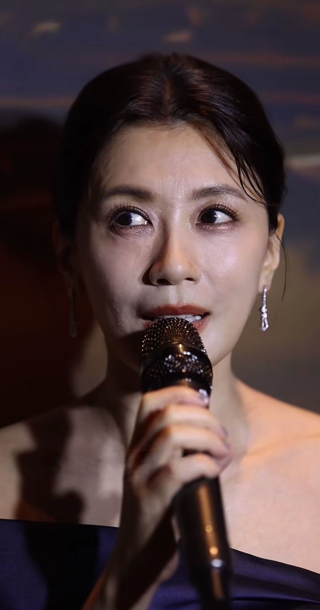 具体来看,贾静雯的苹果肌没有出现明显下垂,面部轮廓依旧清晰,法令纹虽有轻微显现,但并不明显,不会给人松弛显老的感觉。眼角未出现明显皱纹,抬头纹、川字纹等常见的岁月纹路也不突出,皮肤状态整体干净,没有明显的痘痘等肌肤问题。照片中呈现的部分暗沉感,主要是由于拍摄光线不佳,加上化妆后的妆感所致,并非皮肤本身的状态问题。贾静雯本身五官精致,气质出众,即便在无修原相机怼脸镜头下,依旧展现出较好的颜值状态,整体表现十分能打。