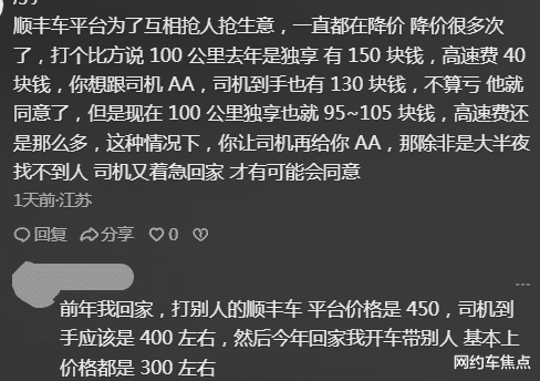 所以回到高速费这件事上,现在的行情就是:大多数车主都会收,而且倾向于让乘客全出。不是因为车主计较,是因为平台把运价压得太低,车主只能从高速费这块找补。如果不收,这一单就变成纯亏。