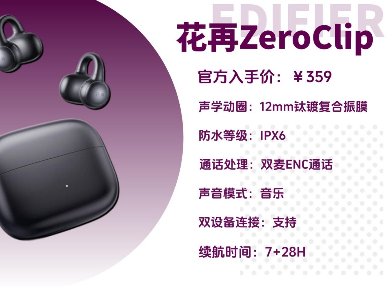 漫步者 Lolli Clip价格:599元推荐理由:主打实用的通勤办公款,降噪和多设备适配很贴心,日常用着省心