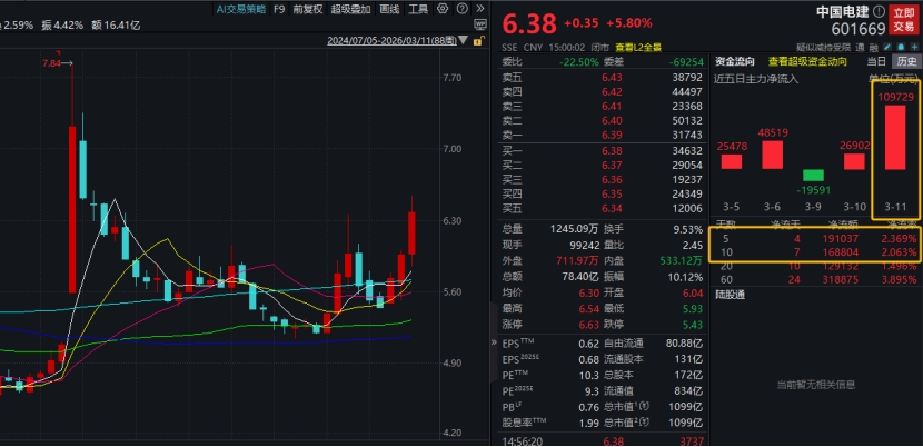 绿电概念反复活跃,绿发电力2连板,中国能建涨停,节能风电、中国电建、韶能股份跟涨。