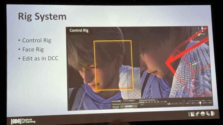 为了解决这个问题,我们在引擎内部直接实现了一套DCC级别的细粒度控制器。这允许动画师在实时调整表演的同时,能跟灯光、技术摄像机等其他部门协同工作,从而确保最佳的最终效果。