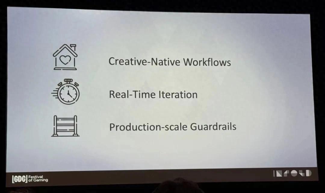 原生创作工作流(Creative-Native Workflows):管线必须能自然地契合创意团队的工作习惯,这包括文案、叙事设计师以及剧情演出美术。 实时迭代(Real-time Iteration):创作者必须能够直接在引擎内对他们的工作进行即时预览和修改。 生产规模护栏(Production-scale Guardrails):我们需要一套系统,帮助团队在这样大规模的生产中维持内容的一致性和稳定性。