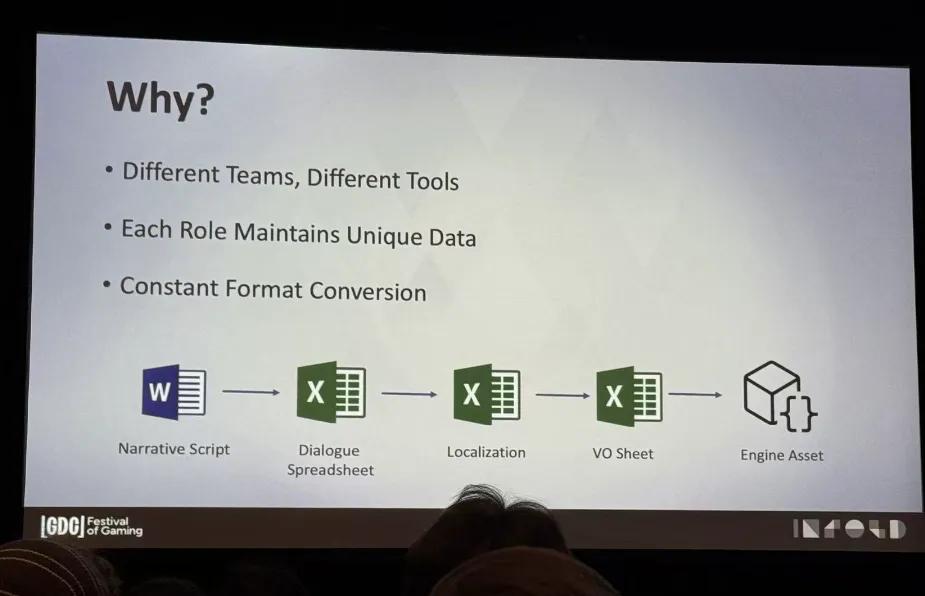 那么,为什么管线会变成这么复杂呢?第一个原因是,不同的工种天生就偏好不同的工具。文案更习惯在Word里工作,而策划则习惯使用Excel里管理对话数据。甚至同样使用Excel,不同团队使用的表格式也往往完全不同。