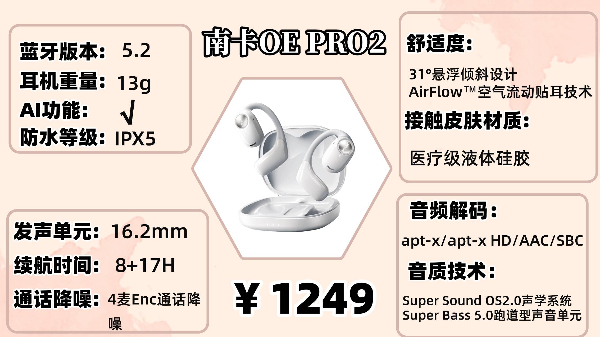作为国内开放式耳机领域的代表性品牌,南卡OE Pro2依靠权威认证与上千名HiFi发烧友的高度评价,在音质与佩戴体验上持续保持行业领先。自上市以来,它凭真实用户口碑不断热销,并加入全能智慧系统,可支持翻译、对话、创作等多场景能力。凭借“顶级音质+全能助手”的双核心优势,OE Pro2稳居开放式耳机旗舰之列。