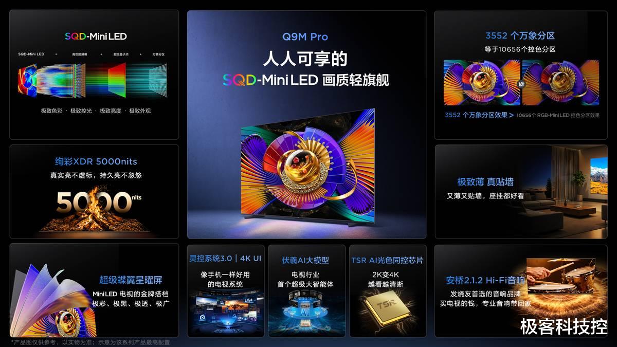 这不,就在前几天的2026 TCL SQD-Mini LED电视春季新品发布会上,TCL直接把原本搭载在机皇X11L身上的SQD-Mini LED技术,“无减配”下放到了三款主流价位段机型上,其中定位“人人可享的SQD-Mini LED画质轻旗舰”的Q9M Pro,一亮相就成了全场焦点。作为深耕家电科技领域多年的博主,我第一时间就扒透了这款机型的细节,只能说2026年注定是SQD-Mini LED电视普及元年。