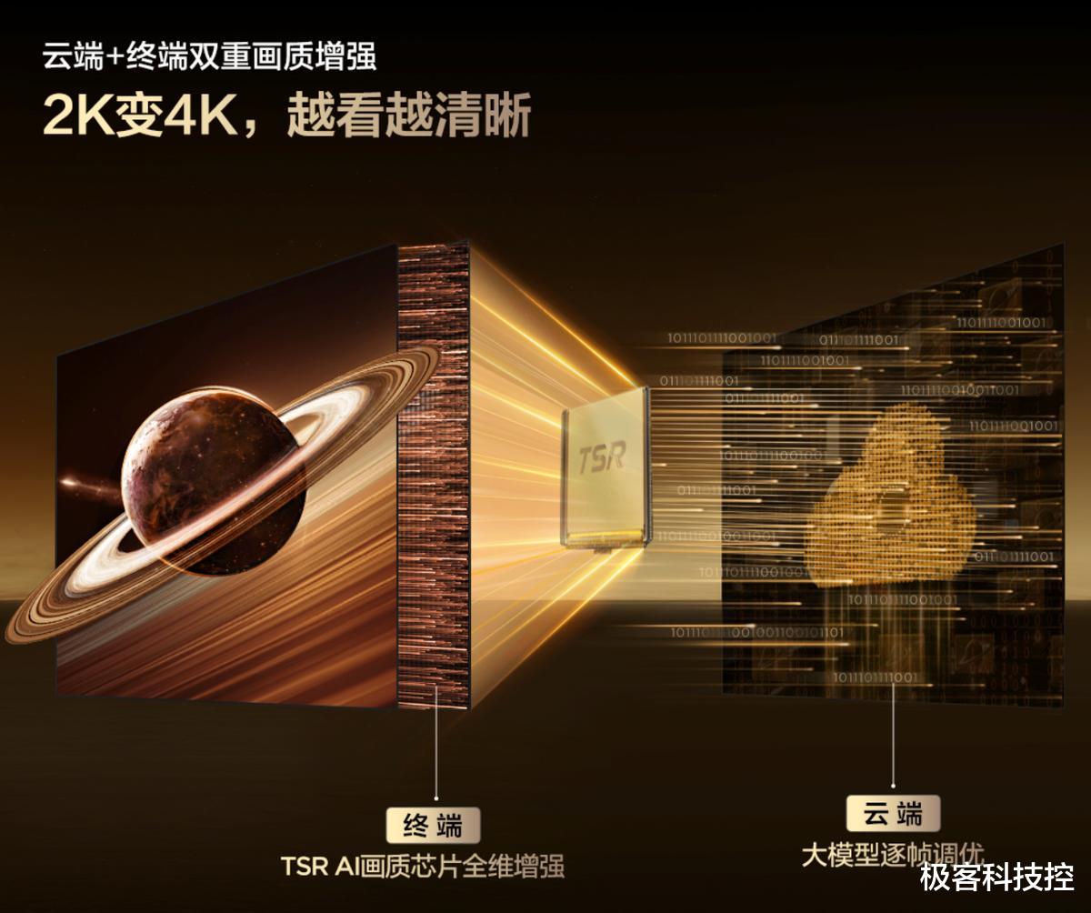 除了画质拉满,Q9M Pro的其他配置也可以说是诚意十足。支持4K 150Hz,玩 FPS、动作游戏完全无拖影,画面丝滑到飞起;最新的TSR AI光色同控芯片,采用云端+终端双重优化,哪怕是普通的在线视频资源,也能逐帧优化成4K高清效果,彻底告别糊片,当然,TCL家100%好评的灵控系统3.0也搭载到了Q9M Pro上,让观影过程更加方便舒心,老人小孩都可以“0门槛”使用。