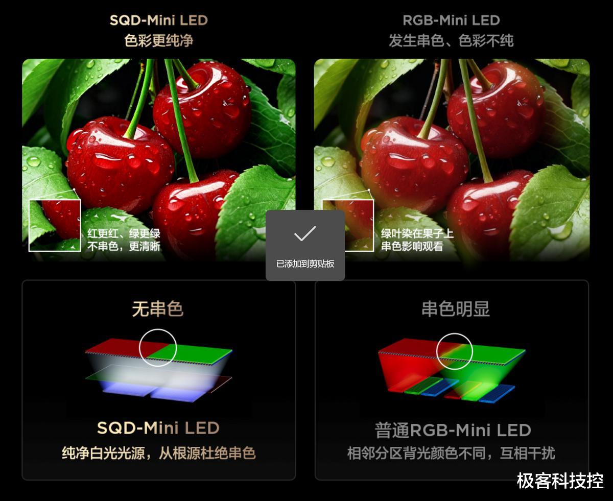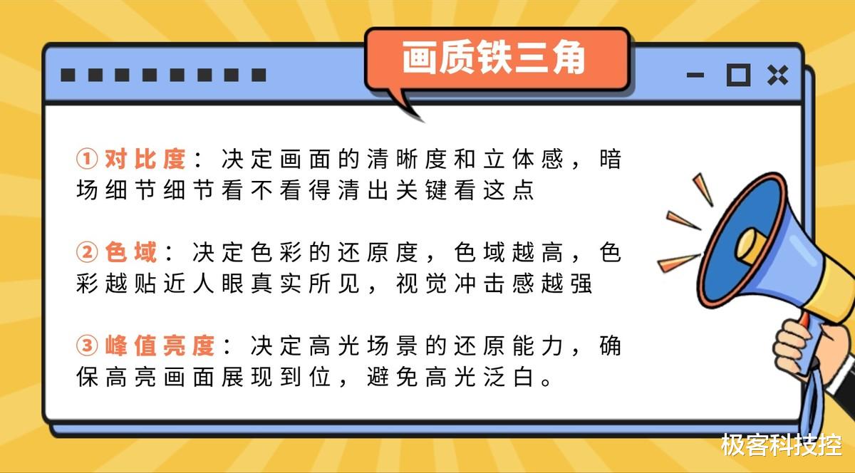 可能还有人不清楚这里面关键的“SQD-Mini LED”到底是什么。平时咱们买电视最怕被各种花里胡哨的参数绕晕,其实判断一款电视画质好不好,核心就看对比度、色域、峰值亮度这三大指标,业内也叫“画质铁三角”。这仨就像电视的“三驾马车”,缺哪一个都算不上真・好画质: