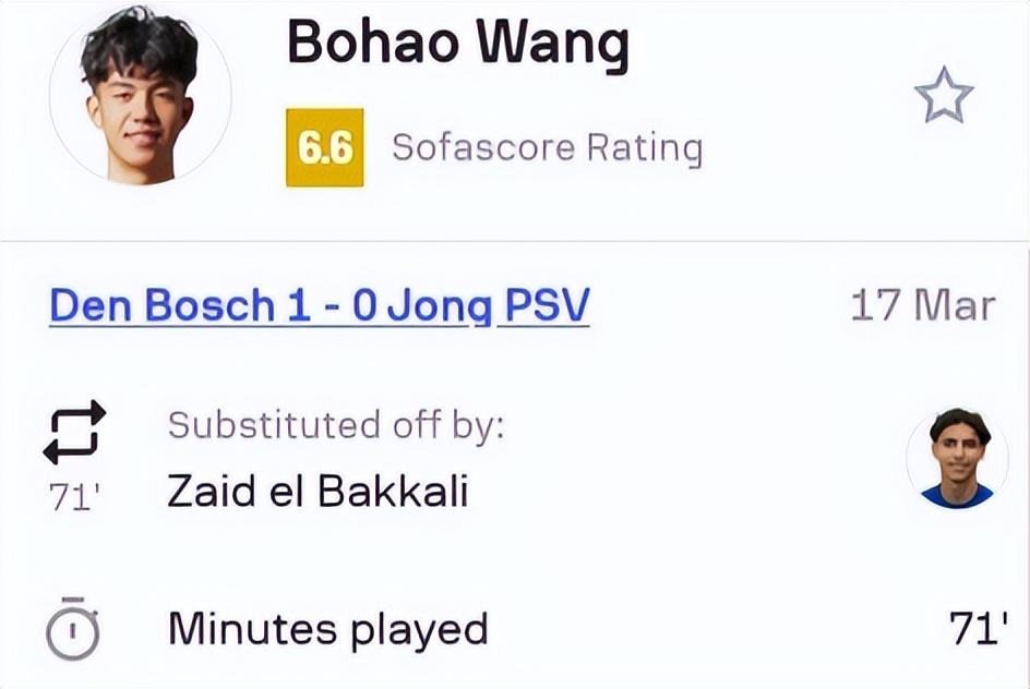 2026年3月17日,荷乙联赛第32轮,邓伯什主场对阵PSV埃因霍温二队。上半场补时第2分钟,邓伯什球员布马苏迪打进1球,最终邓伯什凭借这粒进球1球小胜PSV埃因霍温二队。值得一提的是,20岁中国球员王博豪在这场比赛头一回获得了首发出场的机会,总计出场71分钟,差点取得进球,还以单后腰的身份帮助球队0失球取胜,未来非常可期。