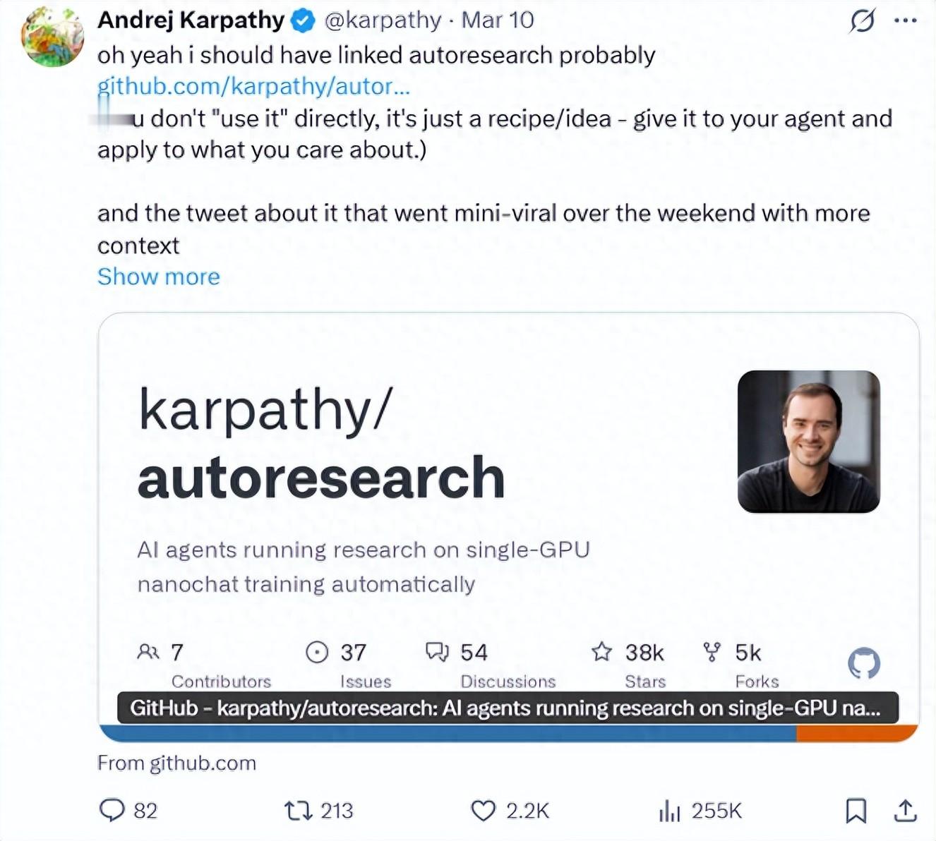 一周前,当 Andrej Karpathy 在 X 平台上发布他的新项目 autoresearch 时,整个 AI 社区