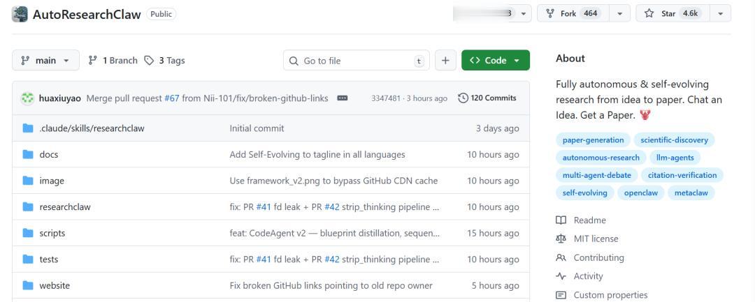 2.项目地址:https://github.com/aiming-lab/AutoResearchClaw