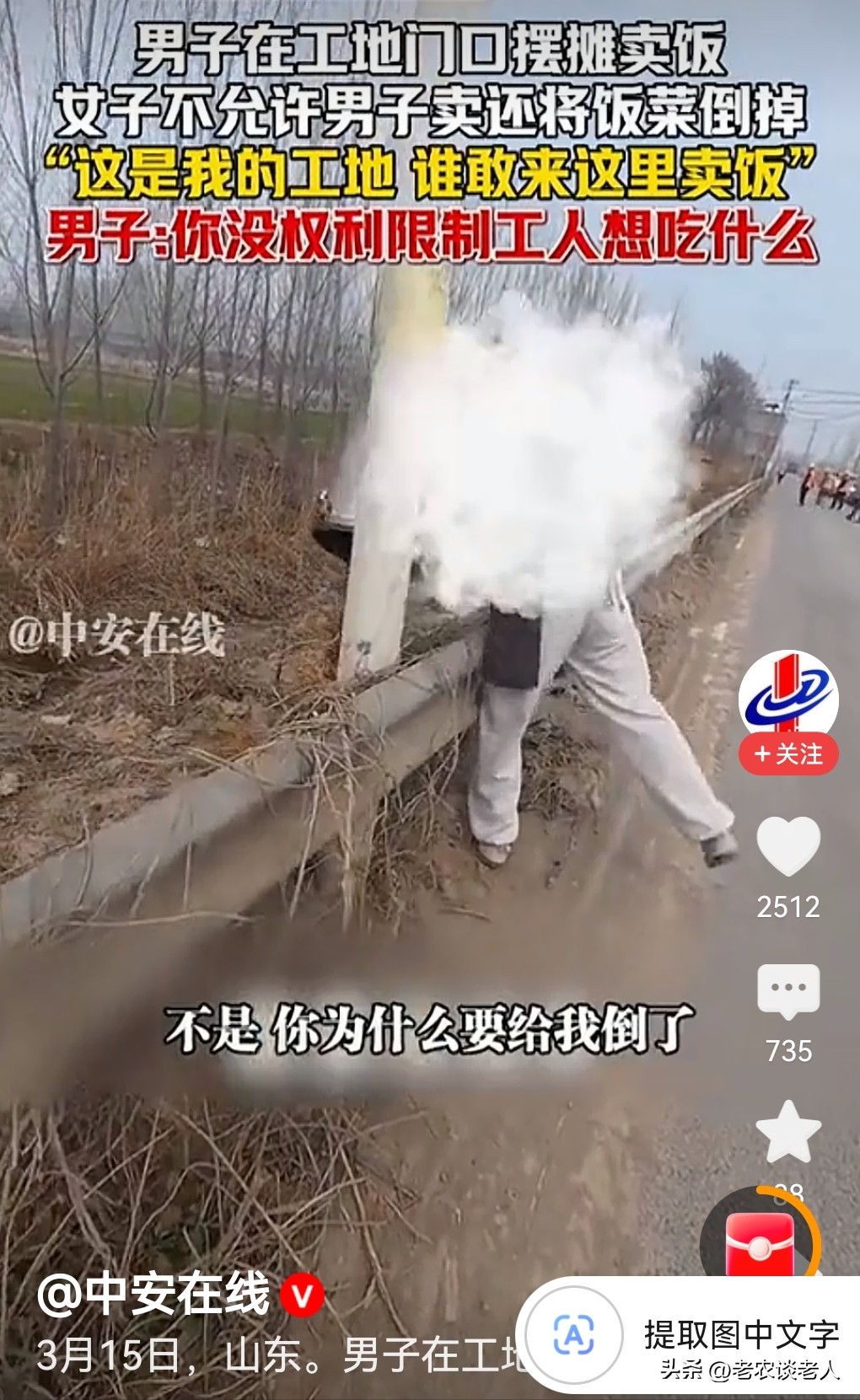 文章内容关键词:男子工地门口卖饭遭女子驱赶倒饭,该怎么办?