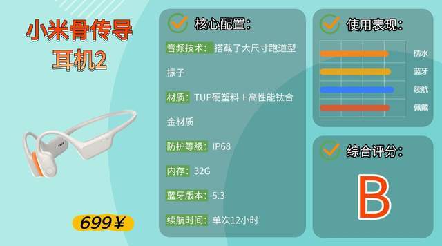 总结:小米骨传导耳机2以亲民定价,实现了旗舰级防水与大存储的下放,虽非MIUI用户无法自定义均衡器,但核心性能扎实,是预算有限运动爱好者的理想之选。