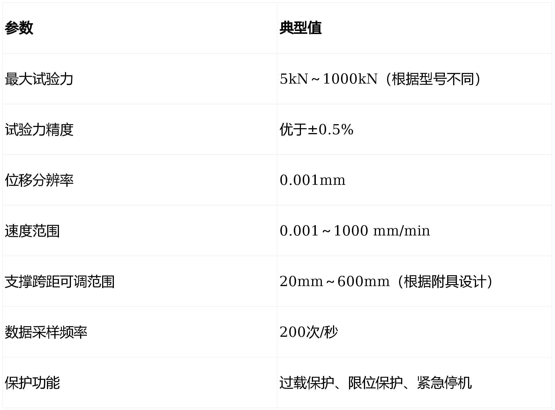 位移测量:通过光电编码器或高分辨率光栅尺实时采集横梁位移,分辨率达0.001mm。
