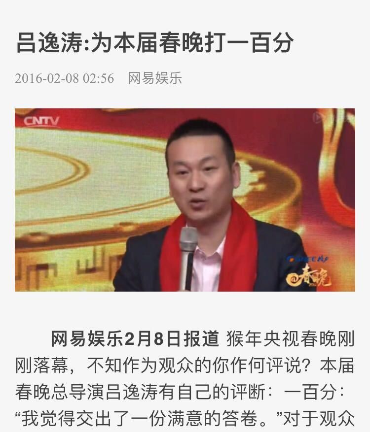 春晚要想真正的改革,首先必须排除这些所有体制内的导演。这些人,不求有功但求无过,只想把政治任务完成就算完事了。要不然2016年的春晚总导演吕逸涛,他怎么敢给自己打100分?