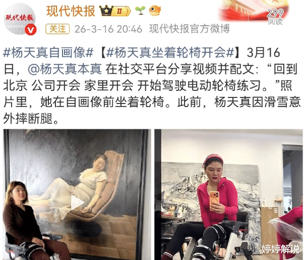 事情要从一场滑雪意外说起。骨折这种伤,搁在普通人身上,起码得卧床休养半个月。但杨天真显然不属于“普通人”范畴。她愣是把电动轮椅开成了“移动办公室”,从公司会议室到自家客厅,一个会议都不落下。