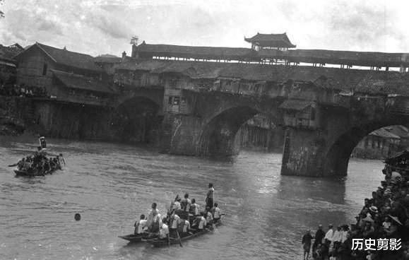 那时候的凤凰,是湘西苗疆的核心地带。城里的石砌城门、风雨廊桥,城外的水车、苗寨,都带着原始的烟火气。照片里裹着头帕的苗人,在沱江上划着龙舟的乡民,还有依山而建的吊脚楼,都是当时最真实的生活切片。