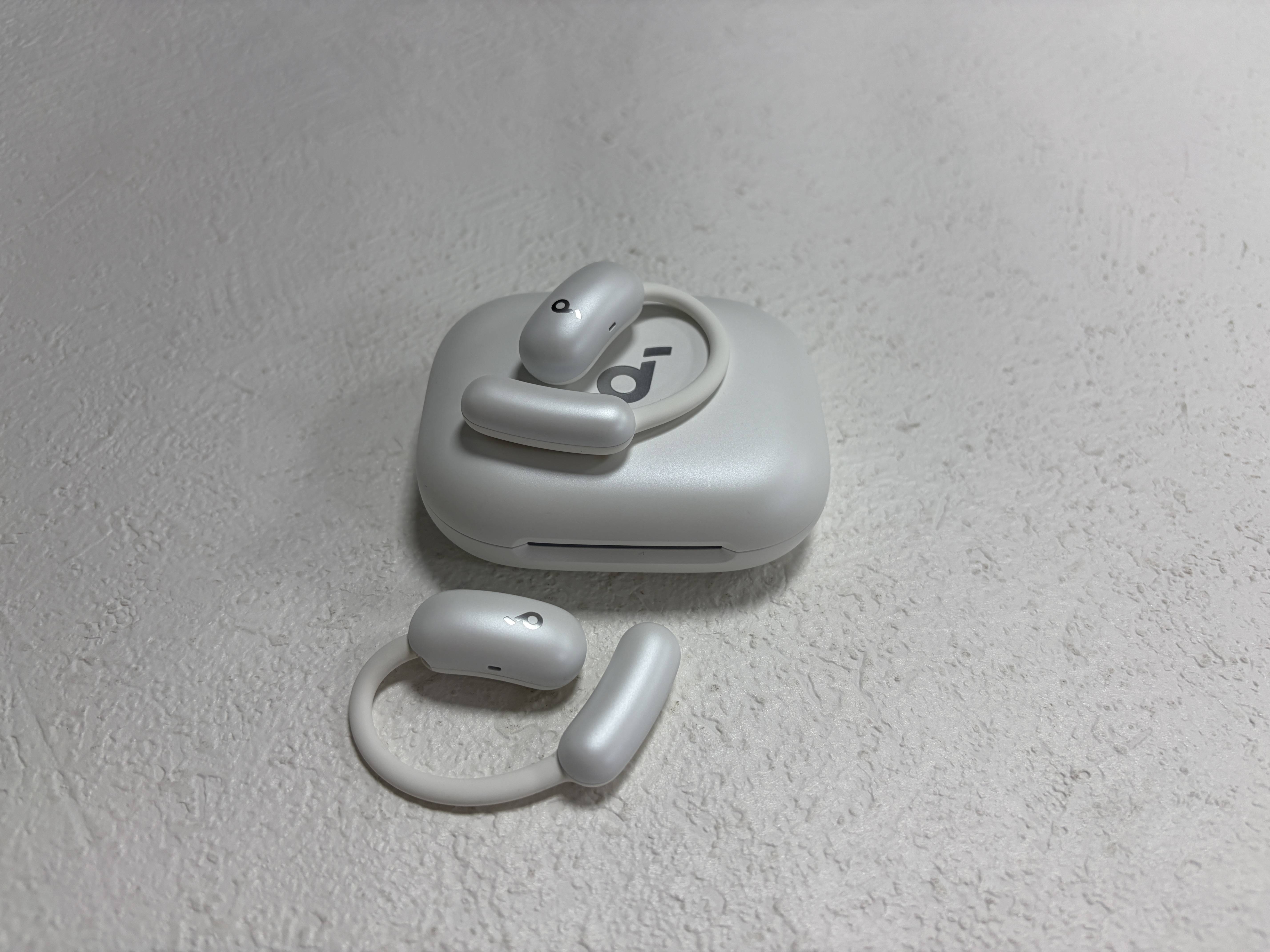 这款耳机耳挂采用了柔性钛丝材料,上耳佩戴较为柔软舒适。但单耳重量有11.1g,适合短时间佩戴。耳机盒设计了挂绳,方便出门。日常使用的时候,对耳朵的贴合度还可以。