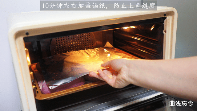 8.烤制时推荐加盖锡纸,避免上色过度而紫色会偏黄。
