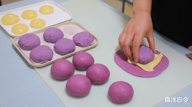 紫薯芋泥是很经典的馅料,很多甜品中都有它的身影。用紫薯芋泥来做软欧包不仅色彩诱人,还富含更丰富的碳水,很适合做代餐或零食。