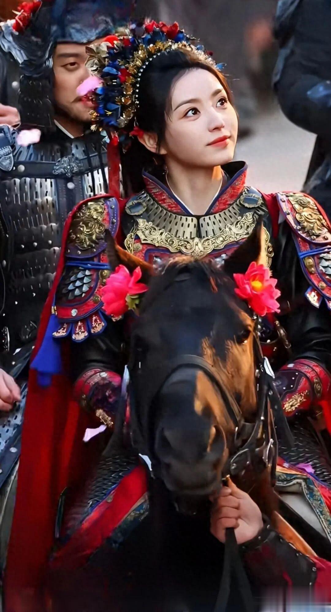 之后的剧集里,她成为驰骋疆场的女将军,身披40斤盔甲会更帅。