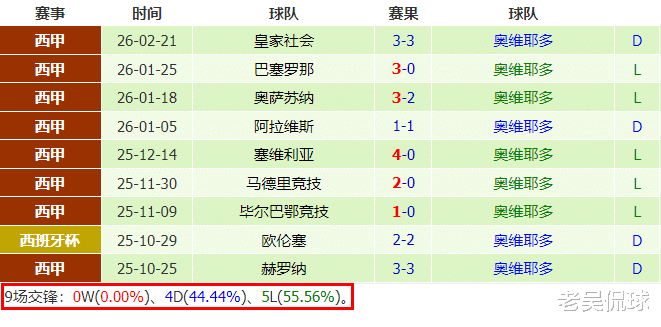 皇家奥维耶多客场1胜攻守失衡,近期胜平负相间,输赢指数相间,6场4负输指数,终结3连平赢指数,客场9场不胜,上一场打平终结连败输指数,主客场都低迷。