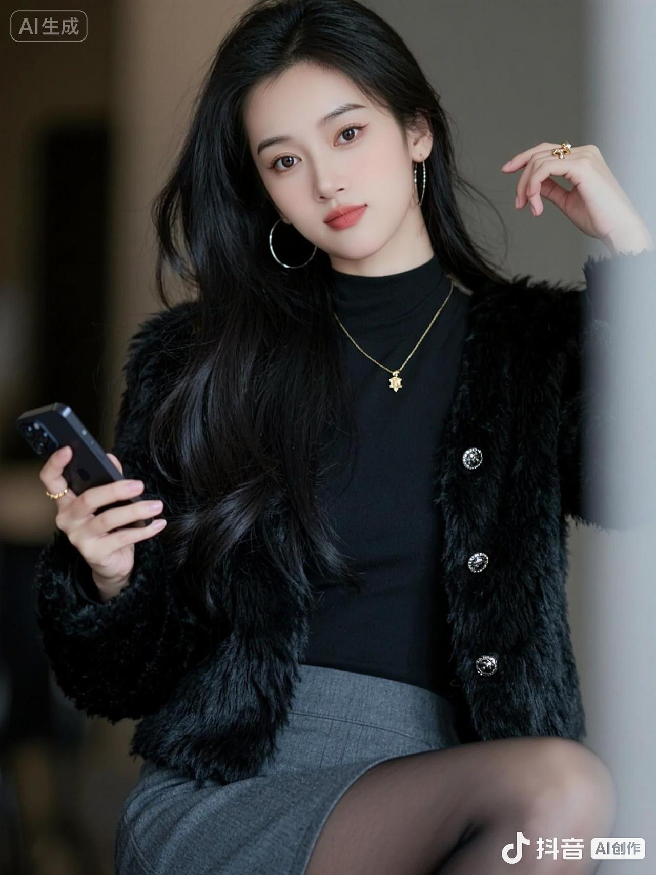 AI高领黑衫写真 抖音ai创作 抖音玩法合伙人计划。