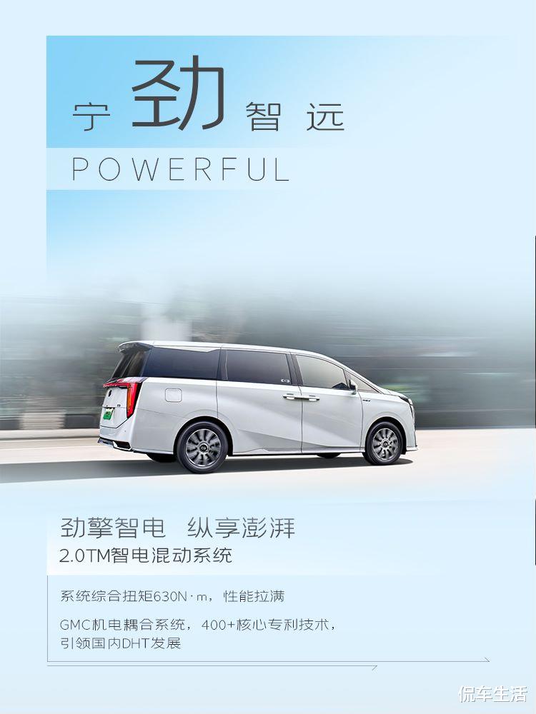 除了这些以外,传祺E9相比腾势D9和别克GL8,最核心的优势就是它的动力系统。传祺E9搭载2.0T插混系统,这台2.0T发动机是广汽自研的混动专用发动机,最大功率130KW,最大扭矩330N·m,驱动电机134kw,最大扭矩300N·m,系统综合最大功率274kW、最大扭矩630N·m,百公里加速仅需8.8秒。除此之外,传祺E9还搭载了一块25.57kWh电池组,可以让它的纯电续航达到136km,满足城市内一天的代步需求完全没有问题。