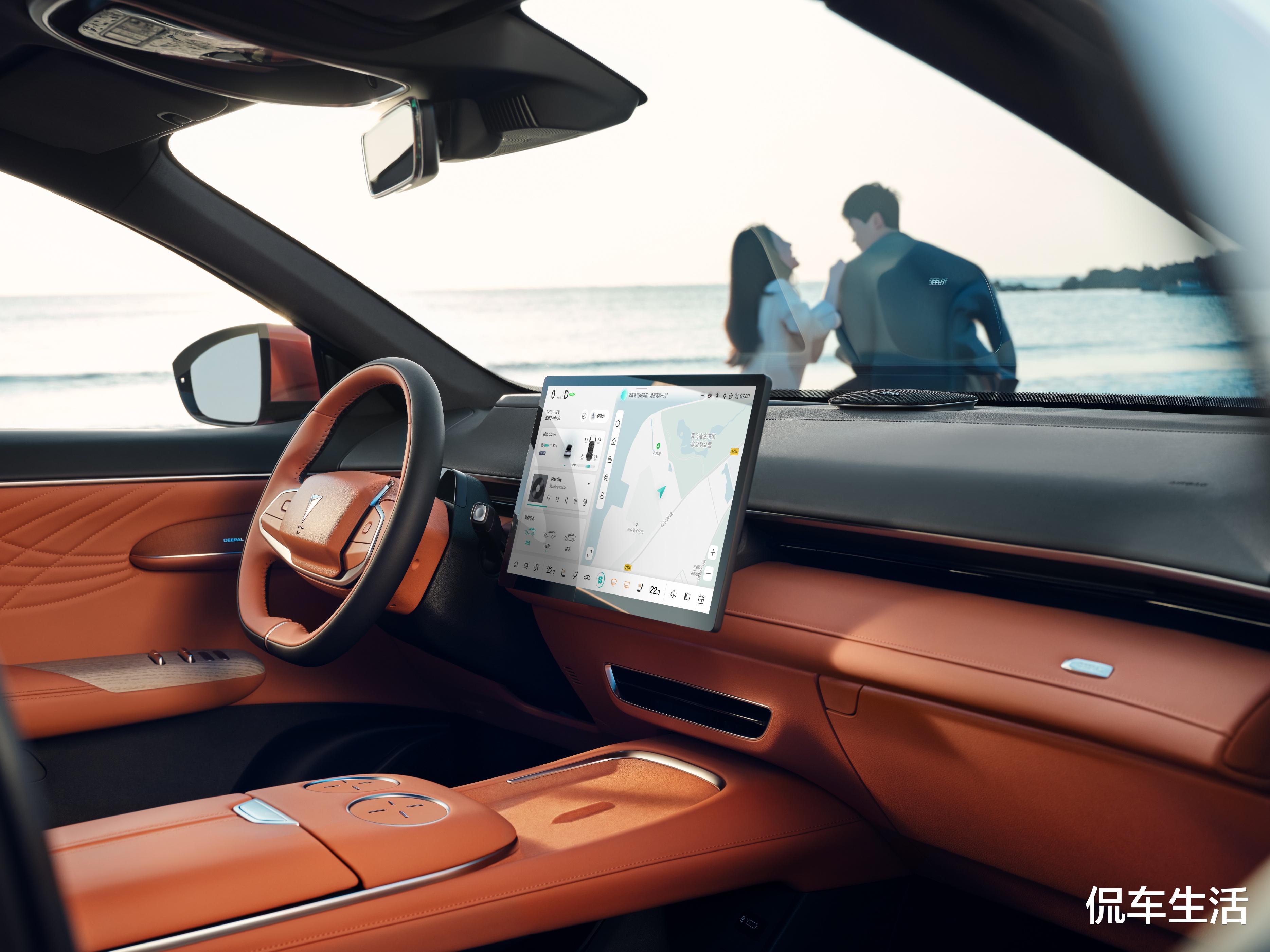 除此以外,深蓝S7还配备了1.9平米揽星全景天幕+电动途阳帘,最大程度的解放了头部空间以及通透感,同时在夏日暴晒的情况下还能进行遮阳防晒,比起很多竞品车型的“日光浴”,还是贴心许多。与此同时,全车配备双蓝牙通道的品牌14扬声器,尽享音乐盛宴,64色氛围灯以及可升降杯托,以及智能隐藏式出风口都凸显未来科技。重点提一下15.6英寸悬浮式中控大屏,内置8155芯片,搭配融合式UI界面设计,全车支持四区的语音控制,整体的操作使用感受非常便利,CMS+DMS、人脸识别+手势交互以及高智能集成式自适应IACC,领先同级燃油车一大截。