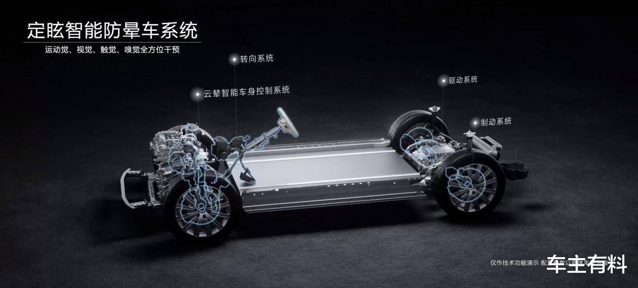 运动觉层面,系统以云辇智能底盘为核心,融合电驱、制动与转向系统,实时感知车辆状态并毫秒级调节阻尼与姿态,显著抑制加速俯仰、弯道侧倾及颠簸路段的抛跳感。视觉方面,车内配备动态点阵悬浮屏,视觉标记随车身运动同步浮动,缓解视觉与前庭感知错位所带来的不适。嗅觉上,专属研发的“清柠雪境”香氛以天然柠檬烯成分为主,清新空气,舒缓情绪,特别适合对气味敏感的用户。配合24℃恒温新风空调在触觉上营造的舒适体感,系统构建出覆盖全场景的防晕解决方案。