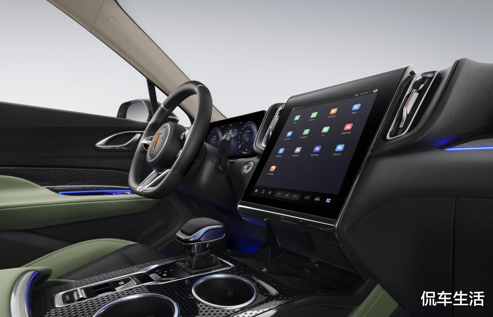 来到车内,红旗HS3以驾乘者为中心的红旗经典环抱式架构,以中控屏幕为对称轴,将东方对称式美学体现的淋漓尽致。特别是石墨灰+抹茶绿的内饰颜色,我认为这个颜色搭配未来将会是销售主力的版本,它将车内的高级感烘托的非常到位,再搭配253色氛围灯以及全方位包覆的高级皮质,不得不感叹豪华品牌对于细节用料的把控,确实是非常有功底的。除此以外,HS3针对年轻用户也给出了很多运动氛围的配置,比如上下平底的运动方向盘,电子换挡机构,运动桶椅等。