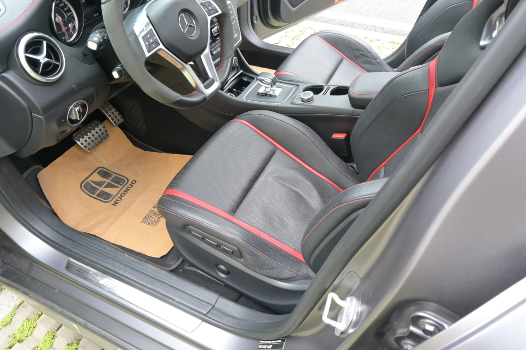 内饰随处可见的红色缝线、RECARO代工的桶椅,坐进车内就会有战斗感袭来。GLA45上这套坐椅腰部和臀部的侧翼“高耸入云”,能给乘员兜的严严实实的。甚至还在靠背上给预留了四点式安全带的开孔,直接下赛道都不会有压力。