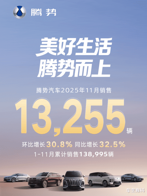 豪华阵营同样稳步向上。腾势品牌11月交付13,255辆,环比大幅增长30.8%,成为当月增速最快的新势力品牌之一。